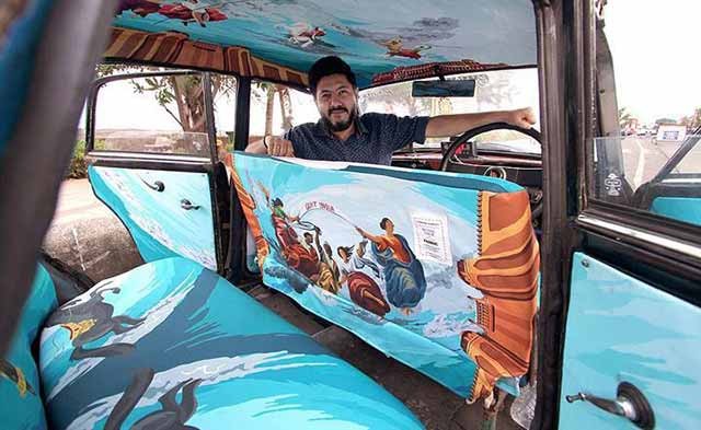 ေရာင္စံုပံု ဒီဇိုင္း မ်ားျဖင့္ တကၠစီအတြင္း ပိုင္းကို အလွဆင္ထားပါတယ္ ။ Taxi Fabric လုပ္ငန္းက လုပ္ကိုင္ေနျခင္း ျဖစ္သည္။ လူငယ္ ဒီဇိုင္နာမ်ား အမ်ားဆံုး ပါ၀င္ထား ၿပီး မြမ္ဘိုင္းၿမိဳ႕၏ လူမသိေသးေသာ အႏုပညာ စိတ္ကူးစိတ္သန္း မ်ားကို ေပါင္းစပ္ ေဖာ္က်ဴးကာ တကၠစီ မ်ား၏ အတြင္းပိုင္းကို အလွဆင္ ေပးေနျခင္းလဲ ျဖစ္ပါတယ္။