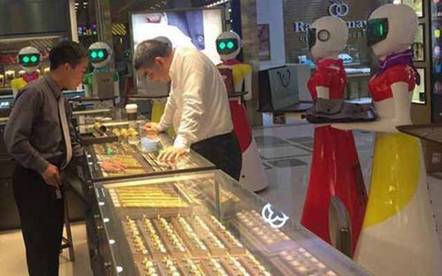 Guangdong ျပည္နယ္ Guangzhouျမိဳ႕မွာ လက္ဝတ္ရတနာထြက္ဝယ္ခဲ့တာျဖစ္ပါတယ္။ သူ႕ေနာက္မွာေတာ့ စက္ရုပ္၈ဦးက ကိုယ္ရံေတာ္အျဖစ္ပါခဲ့ပါတယ္။ သူရဲ့ပိုက္ဆံအိတ္အျပင္အျခားအသံုးအေဆာင္ေတြကို စက္ရုုပ္ေတြကိုသယ္ခိုင္းခဲ့ပါတယ္။