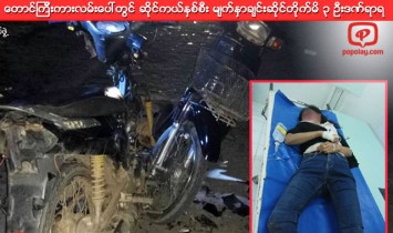 Myanmar News လမ္းေဘးတြင္ ရပ္ျပီးဖုန္းေျပာေနတဲ့သူ ႏွစ္ဦး ကားအတိုက္ခံရ 09 Aug 2018 | 1,452 views ၾသဂုတ္လ ၇ ရက္ေန့ ည ၉ နာရီခန့္ လူႏွစ္ဦး လမ္းေဘးတြင္ ဆိုင္ကယ္ရပ္ျပီး ဖုန္းေျပာေနစဥ္ ယာဥ္တစ္စီးက ဝင္တိုက္မိျပီး ႏွစ္ဦးစလုံးေသဆုံးခဲ့သည္ဟု သိရသည္ ။