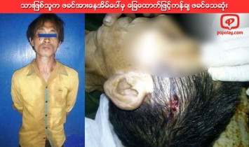 Myanmar News သားျဖစ္သူက ဖခင္အားေနအိမ္ေပၚမွ ေျခေထာက္ျဖင့္ကန္ခ် ဖခင္ေသဆုံး 11 Jul 2018 | 1,431 views ဇူလိုင္လ ၉ ရက္ေန့ ည ၁၀ နာရီခန့္တြင္ ဖခင္ႏွင့္သား စကားမ်ားရန္ျဖစ္ရာ သားျဖစ္သူက ဖခင္အားေနအိမ္ေပၚမွေျခေထာက္ျဖင့္ ကန္ခ်သျဖင့္ ဖခင္ျဖစ္သူ ေသဆုံးမႈ ျဖစ္ပြားခဲ့သည္ ။