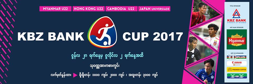 ျမန္မာ၊ ေဟာင္ေကာင္၊ ကေမၻာဒီးယားနဲ႔ ဂ်ပန္တကၠသိုလ္မ်ား လူငယ္ေတြရဲ႕ အားျပိဳင္မႈကို ဇြန္လ (၂၈) ရက္ေန႔မွ ဇူလုိင္ (၂) ရက္ေန႔အထိ KBZ BANK CUP 2017 တြင္ မ်က္၀ါးထင္ထင္ျမင္ရမည္ျဖစ္သကဲ့သို႔ပရိသတ္ အမ်ားစု အလုပ္ဆင္းခ်ိန္ျဖစ္ေသာ ညေန(၆း၀၀)နာရီကို ျမန္မာအသင္း ကစားမယ့္အခ်ိန္အျဖစ္ ေရြးခ်ယ္ထားပါသည္။ကြင္း၀င္ေၾကးမွာရိုးရိုးတန္း (ေတာင္နဲ႔ေျမာက္ ပဲြၾကည့္စင္)က ၁၀၀၀ က်ပ္၊ ရိုးရိုးတန္း (အေနာက္ဘက္တန္း ပဲြၾကည့္စင္က ၂၀၀၀ က်ပ္နဲ႔ အထူးတန္းကေတာ့ ၃၀၀၀ က်ပ္ပဲျဖစ္သည္။