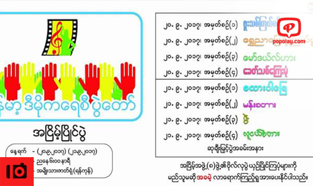 ျမန္မာ့ဒီမုိကေရစီပြဲေတာ္ အျငိမ့္ျပိဳင္ပြဲက်င္းပေရးလုပ္ငန္းေကာ္မတီႏွင့္ အျငိမ့္ျပိဳင္ပြဲဒို္င္အျဖစ္ေဆာင္ရႊက္ေပး မည္ပညာရွင္မ်ား ေတြဆံုေဆြးေႏြးပြဲကုိ ျမန္မာအသံႏွင့္ ရုပ္ျမင္သံၾကားအနီး Forever Group ရံုးမွာက်င္းပ ျပဳလုပ္ခဲ့ေၾကာင္းသိရပါတယ္။