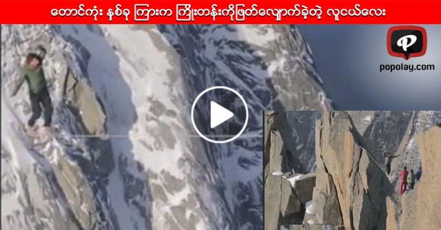 အျမင့္ေပေထာင္ ေက်ာ္ ရွိတဲေတာင္ကံုး နွစ္ခု ၾကားက ၾကိဳးတန္းကိုျဖတ္ေလ်ွာက္ခဲ့တဲ့ လူငယ္ေလး