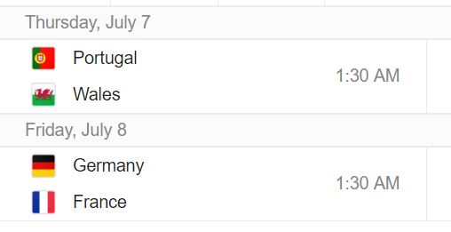 ဆီမီးဖိုင္နယ္ပြဲစဥ္အခ်ိန္ ( ျမန္မာစံေတာ္ခ်ိန္အတိုင္း )