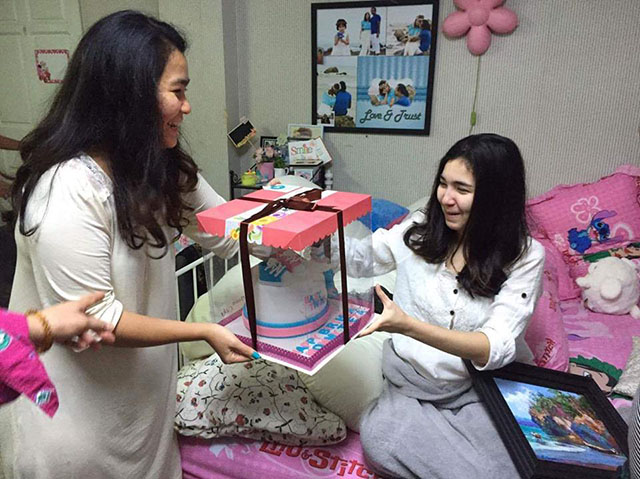 ေမြးေန႔ သန္းေခါင္မွာ မိသားစု က surprise လုပ္ေပးလို႔ ေပ်ာ္ေနတဲ႔ ခ်စ္သုေ၀ေလး ကိုေတြ႔ရပါတယ္။ အမၿဖစ္သူ လက္ေဆာင္ေပးတဲ႔ cake ေလးရယ္ အေဖလက္ေဆာင္ေပးတဲ႔ ပန္းခ်ီ ေလးကို ကိုင္ၿပီး ေပ်ာ္္ရႊင္ေနတဲ႔ ပံုေလးေတြကို ေတြ႔ရပါတယ္။