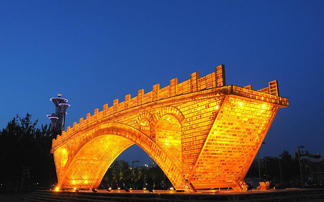 တ႐ုတ္ကုန္သြယ္ေရးပိုးလမ္းမႏွင့္ ကူးသန္းဆက္သြယ္ေရးကို အႏုပညာျဖင့္ ဖန္တီးပုံေဖာ္သည့္အေနျဖင့္ တ႐ုတ္အႏု လက္ရာပညာရွင္ ရႈယုံက ပယင္းတုံးမ်ား ျဖင့္တည္ေဆာက္ထားသည့္ ေ႐ႊေရာင္ တံတားတစ္စင္း ဖန္တီးျပဳလုပ္ထားခဲ့ ေၾကာင္းသိရသည္။ လြန္ခဲ့သည့္ ႏွစ္ေပါင္း ၁၄၀၀ခန႔္ မွယေန႔ခ်ိန္ထိ အသုံးျပဳ ေနဆဲျဖစ္ေသာ ေျမာက္ပိုင္းမွေက်ာင္း က်ိဳတံတားအသြင္ ကိုယူကာ ပယင္းေက်ာက္တုံး၂၀၀၀၀ျဖင့္ ယခုပယင္းပိုးလမ္းမတံတားကို ဖန္တီး ထားခဲ့ျခင္းျဖစ္သည္။