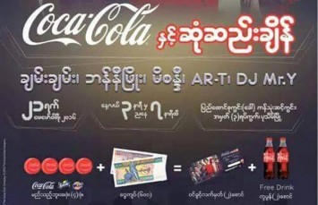 Movie Stars - Celebrity Coca Cola နွင္႔ ဆံုဆည္းၿခင္း Show ပြဲ 17 Feb 2016 | 1,623 views coca cola နွင္႔ ဆံုဆည္းၿခင္း Feb 21 ရက္ေန႔ ပုသိမ္ၿမိဳ႔ ၿပည္ေထာင္စုကြင္း မွာၿပဳလုပ္မွာ ၿဖစ္ၿပီး ခ်မ္းခ်မ္း ၊ ဘန္နီၿဖိဳး ၊ Mi Sandi ၊ Ar - T ၊ DJ -Mr.Y တိုကလဲ ပါ၀င္ေဖ်ာ္ေၿဖၾကမွာၿဖစ္ပါတယ္